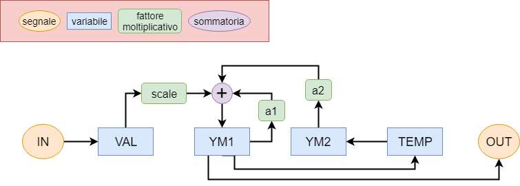 Per implementarne il funzionamento, ho sfruttato le variabili temporanee definite all'inizio della funzione, ed ho strutturato un ciclo while per scorrere i campioni.