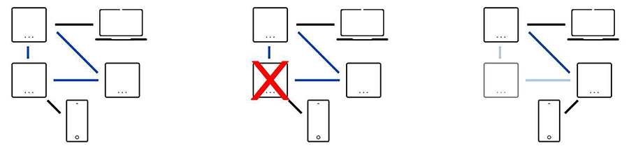In the same way, the dynamism and the predisposition to changes of a mesh-network make it efficient in case of failures or interruptions of connections: thanks to its ability to reconfigure and reorganize the topology, it is able to deal with events of this type by reacting in good time and restoring the correct network coverage, limited to what is made possible by the physical devices availability in the areas concerned.