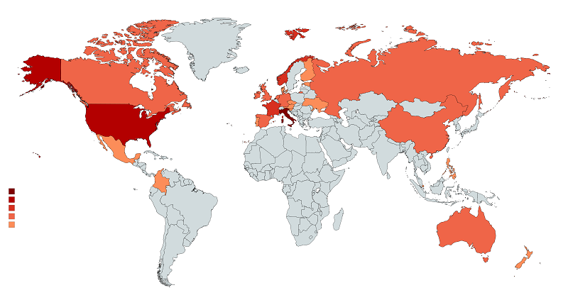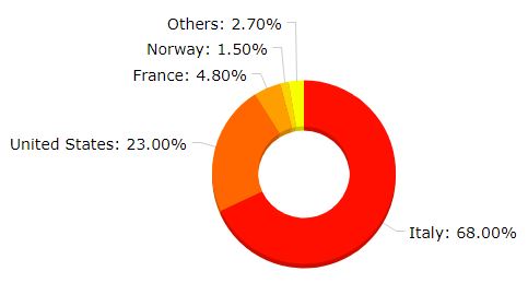 The countries reached are more than 30, on all continents; the concentration of users, however, is very unbalanced towards Italy and the United States. These are the countries with the highest number of visitors, followed by a complete list of the countries in which it was registered a consistent number of users.