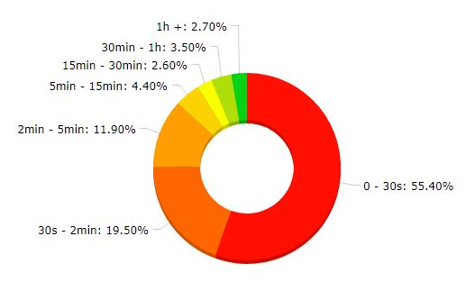 The data collected on traffic shows a pool of users not only scattered in many geographical areas, but also particularly interested and active. Many users (about 50%) decide to stay on the platform for a period of more than 30 seconds, which means that about half of the people who open the platform takes the time to understand how this works or for use it by activating some charts. The percentages of users who have undertaken sessions of different durations are shown below.